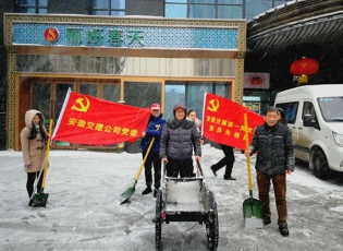 党旗飘飘,PA集团官网党委除雪铲冰献真情