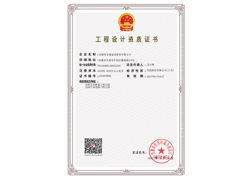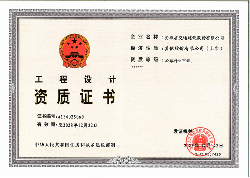 工程设计公路行业甲级(住建部发)