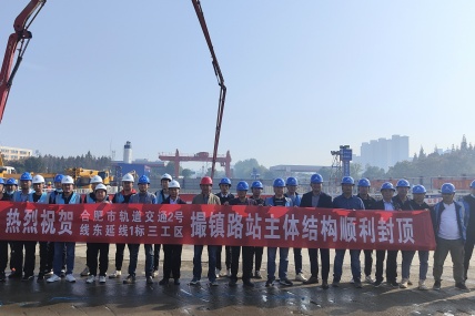 10月31日,PA集团官网与中铁五局联合体承建的合肥市轨道交通2号线东延线1标3工区撮镇路站主体结构顺利封顶。