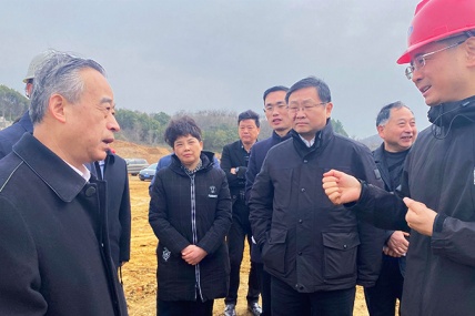 3月03日上午马鞍山市委书记张岳峰,市委副书记、市政府常务副市长吴劲一行莅临PA集团官网承建的宁芜改扩建黄梅山保通线项目现场考察调研...