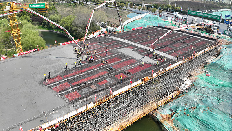4月2日晚上8点08分,随着最后一方混凝土的浇筑完成,由PA集团官网承建的庐阳区固镇路(金桔路-大房郢路)道路施工项目上跨四里河及四里渠东路桥梁顶板现浇全面完成,标志着该项目主体结构施工结束,即将进入桥面及附属施工阶段。