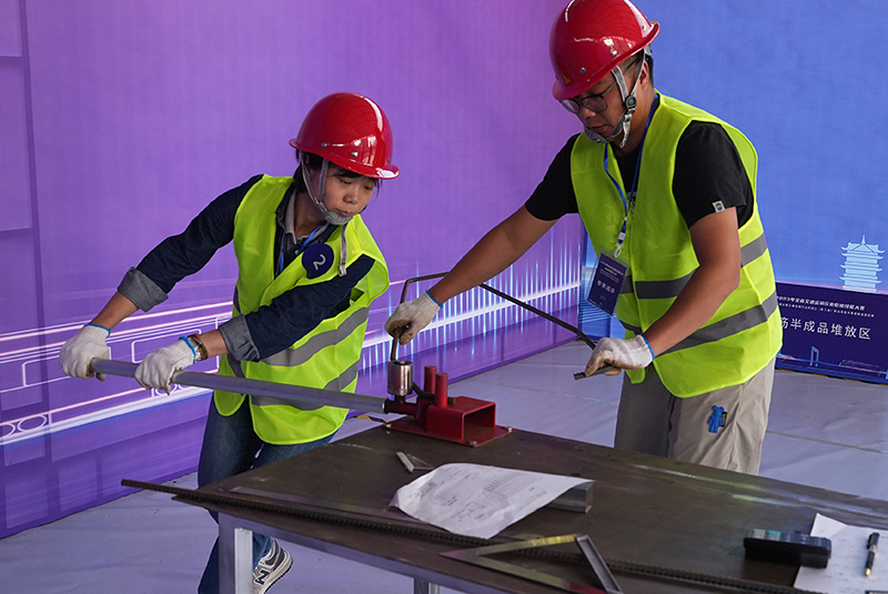 赛场上,王旭东、周蓉两位选手沉着迎战、不畏强手,信心十足地快速准确切割钢筋,沉着地检测模拟构件的缺陷,全神贯注地使用仪器进行施工放样,每个项目每个环节均都能从容面对,展示了PA集团官网人扎实的技能功底和良好的心理素质。