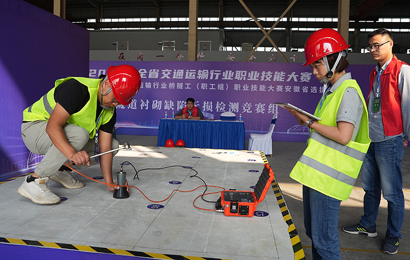 据悉,此次大赛由安徽省交通运输厅、安徽省人力资源和社会保障厅共同举办。本次大赛共设置城市轨道交通行车调度员、新能源汽车维修工、桥隧工、电动港口装卸机械司机4个职业赛项。比赛采取理论知识竞赛和操作技能竞赛相结合的方式,涵盖了钢筋骨架加工、隧道衬砌缺陷无损检测、施工放样3个竞赛项目。