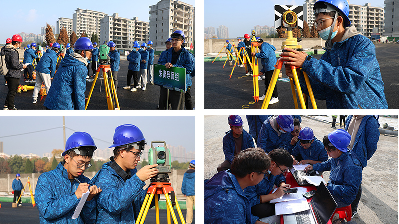 本次大赛分为测量理论知识考核和技能实操竞赛两个部分。在理论考试中,各位学员边思考边答题,秩序井然。在“全站仪对点赛”和“水准+全站”实操竞赛中,导师们通过抽签,将身份转换为裁判,对比赛进行全程跟踪。随着总裁判的一声令下,参赛学员们有条不紊地启动全站仪、水准仪等测量仪器设备。