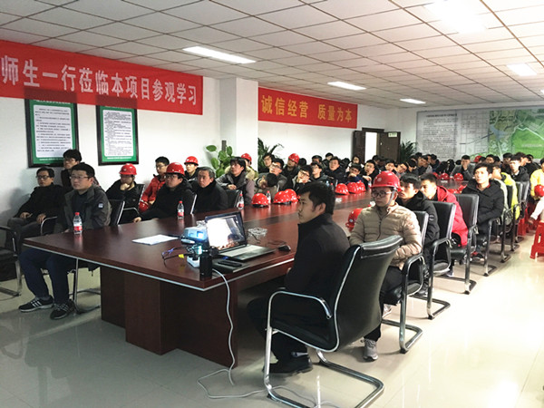 随后,安理工师生一行来到项目施工现场,在安全体验馆体验学习了安全防护用品、消防灭火、安全帽撞击、钢丝绳使用、安全急救、综合用电等项目安全管理措施。接下来工程部、试验室等部门负责人及技术主干分别就隧道结构施工工艺、隧道防水施工工艺、试验检测的重要性及主要检测手段做了专业、细致的解说,并和同学们互动探讨,详细解答了他们提出的工程技术方面的问题。