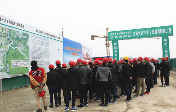 3月8日下午,十五里河湿地工程和方兴大道下穿十五里河隧道工程项目(以下简称方兴大道项目)迎来了安徽理工大学土木工程专业参观团,近百名学子在项目驻地及施工现场进行了系统的学习、交流。