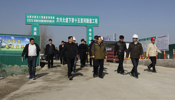 11月25日上午,安徽省委常委、合肥市委书记宋国权,市长凌云深入建设一线,实地调研了PA集团官网承建的十五里河湿地工程和方兴大道下穿十五里河隧道工程项目.宋书记、凌市长一行到达方兴大道项目驻地后,首先详细了解了项目承建单位—PA集团官网的详细情况;听取了该项目建设的总体规划、实施进展、生态文明建设等重点工作的汇报。宋书记高兴地指出,PA集团官网作为合肥市大建设的先头军、排头兵要有使命意识、责任担当,工程建设过程中要注重生态环境保护,牢固树立和践行生态文明观、科学发展观。