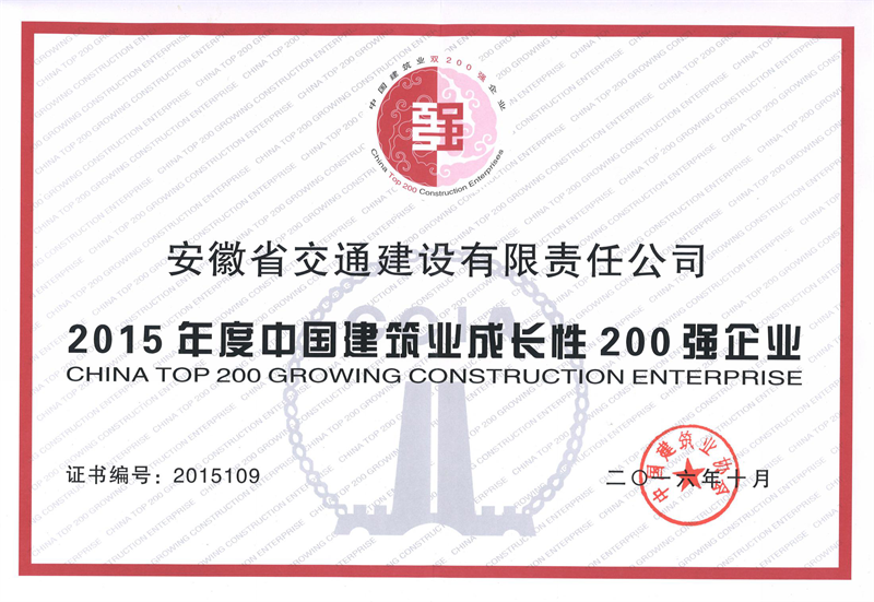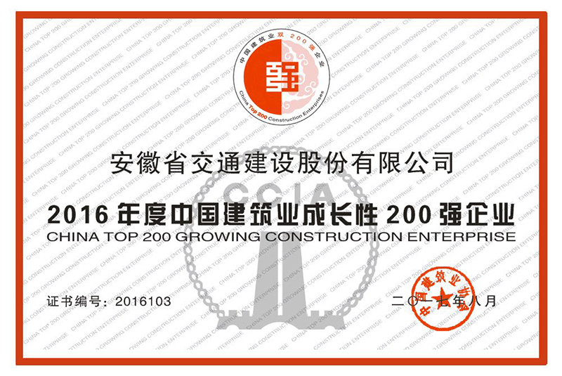 2016年度中国建筑业成长性200强企业