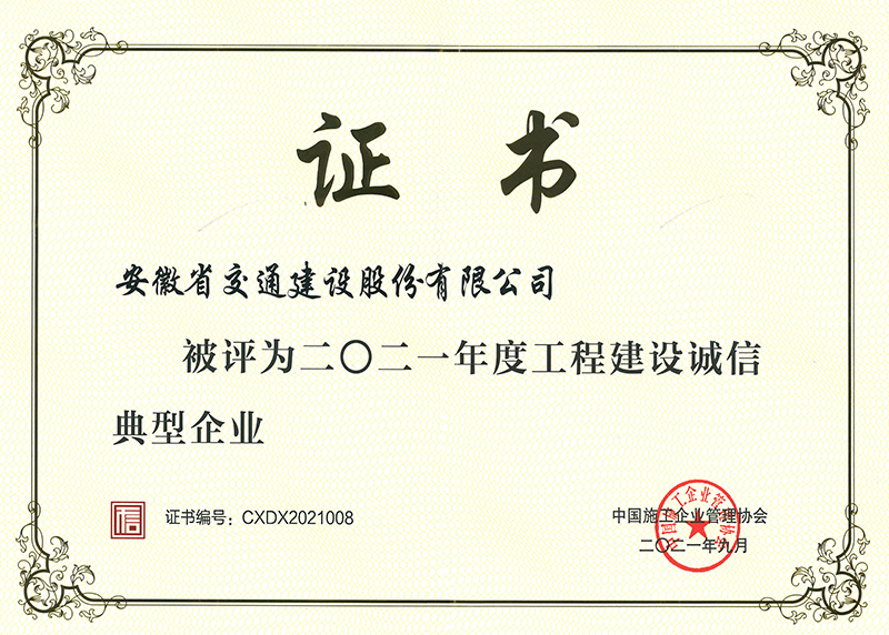 2021年度工程建设诚信典型企业