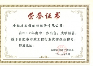 合肥市市政工程行业优秀企业称号